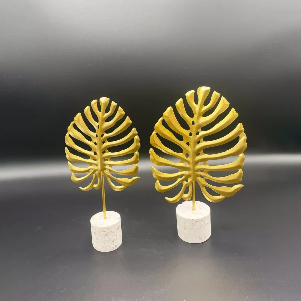 - Elegant Design: A gold tropical tree branch with Monstera-shaped leaves.