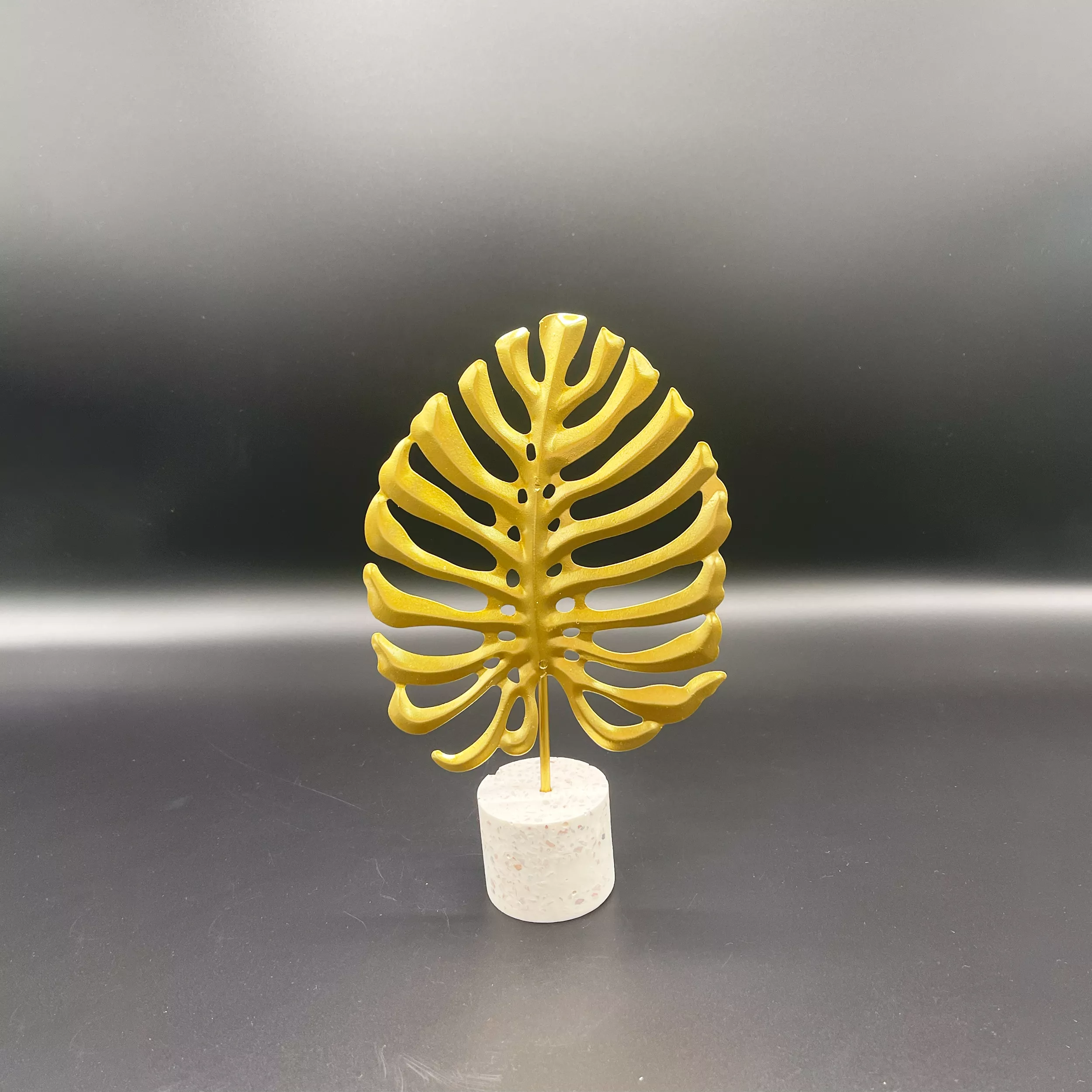 Introducing our Gold Metal Palm – A unique blend of modern design and natural beauty. Our stunning piece features artificial Monstera leaves crafted from durable iron, set atop a sleek cement base. Perfect for any space, its gold finish adds a touch of luxury while symbolizing hope and renewal.