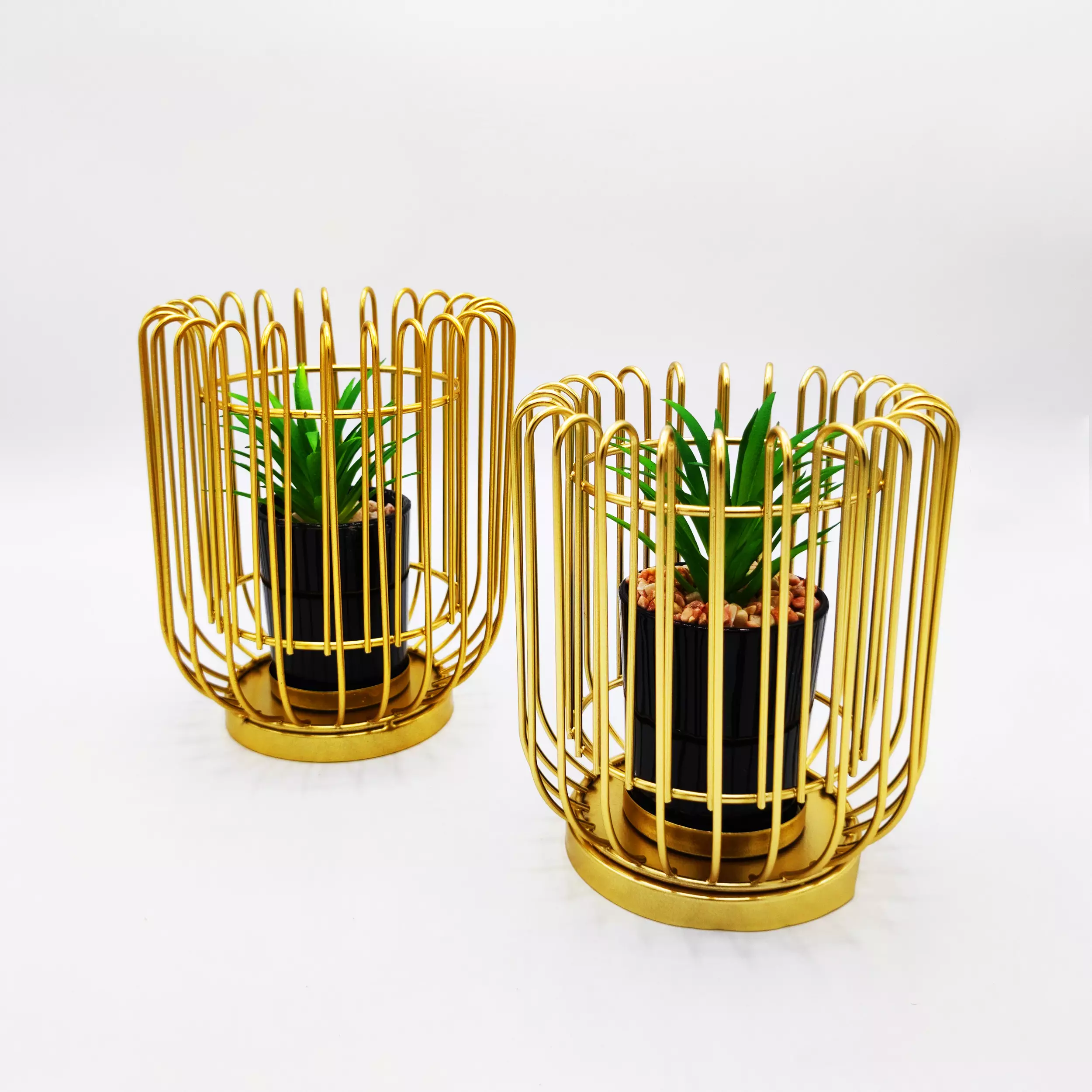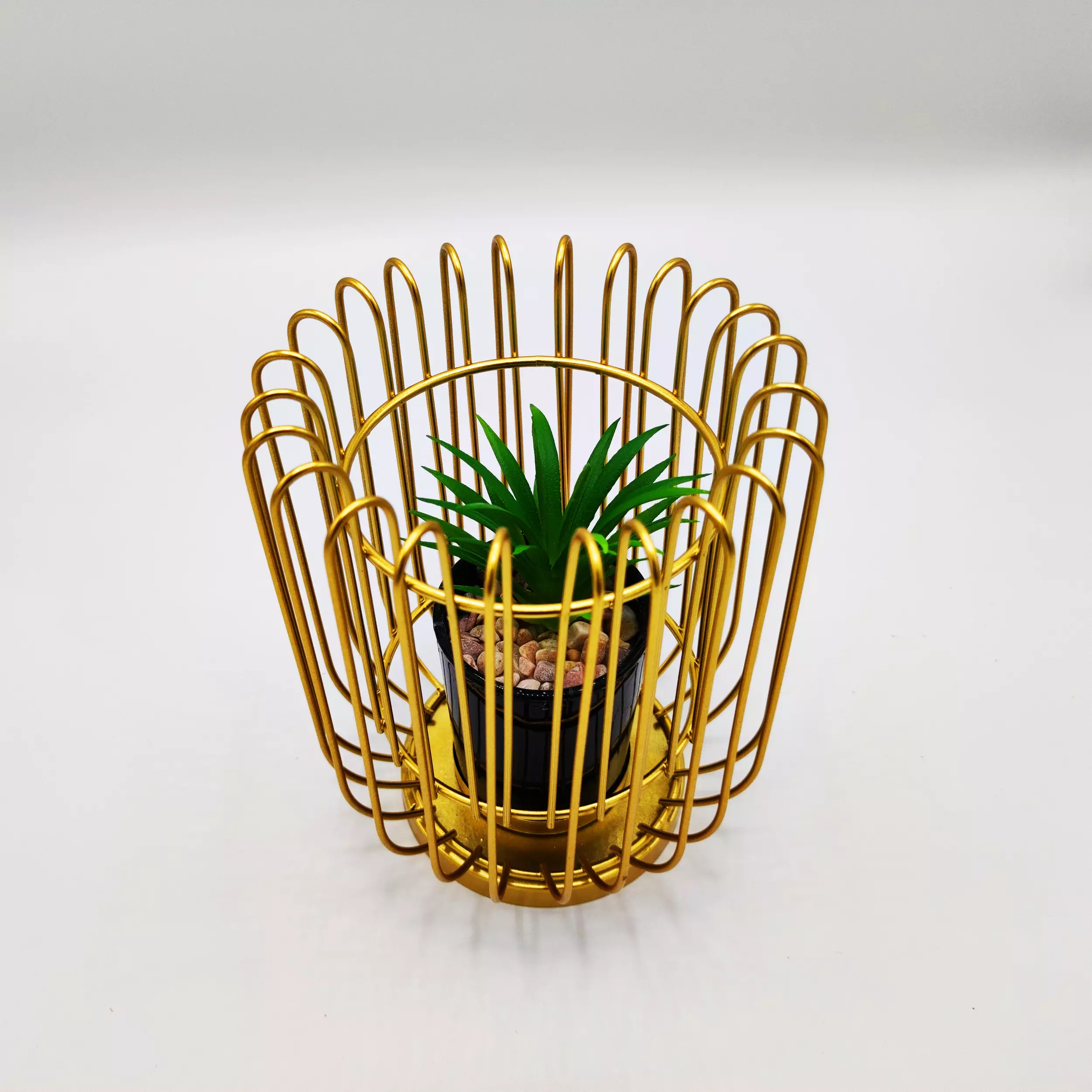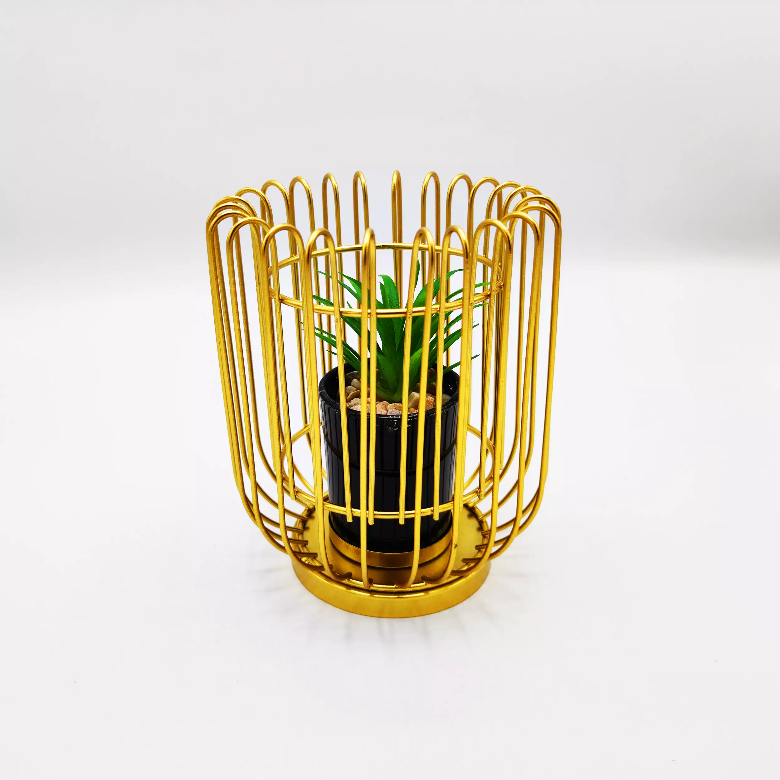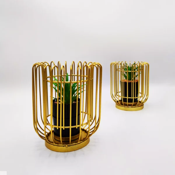 Our Gold Metal Cage with ceramic vase Planter Stand brings modern sophistication and effortless charm to any space. This low-maintenance planter offers a stylish way to enhance your home decor. Its compact design is perfect for limited spaces, adding elegance to your desk, bookshelf or console with no upkeep required.